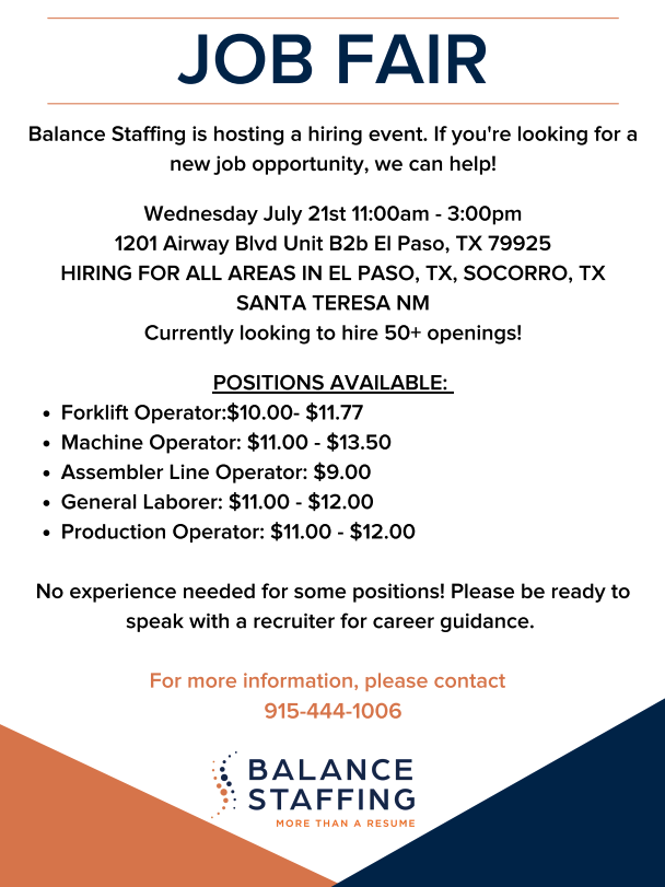 We have been the local leader in employment services to El Paso for over two decades. Serving Jurez El Paso Texas and the Southwestern United States as well as Chihuahua and. Balance Staffing - El Paso TX El Paso Texas.